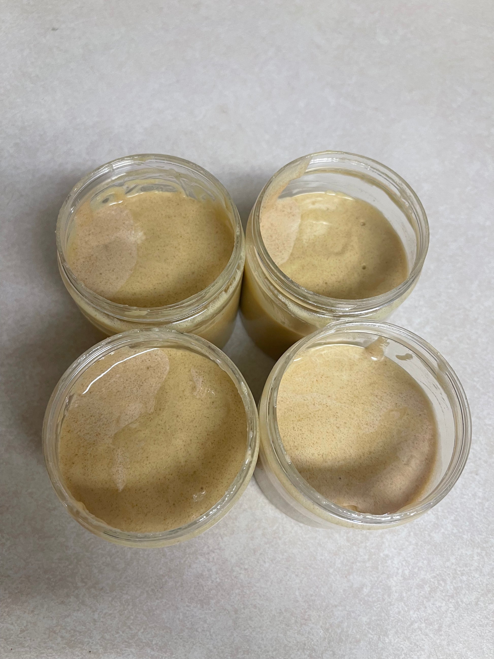 Foaming Whip Base, Granulated Brown Sugar (Sugar Cane), Unrefined Mango Butter, Orange Peel Powder, Lemon Peel Powder, Turmeric Powder, Jojoba Oil, Vitamin E, Arrowroot Powder, Fragrance Blend (Amber, Passionfruit, Geranium), Sweet Orange Essential Oil.