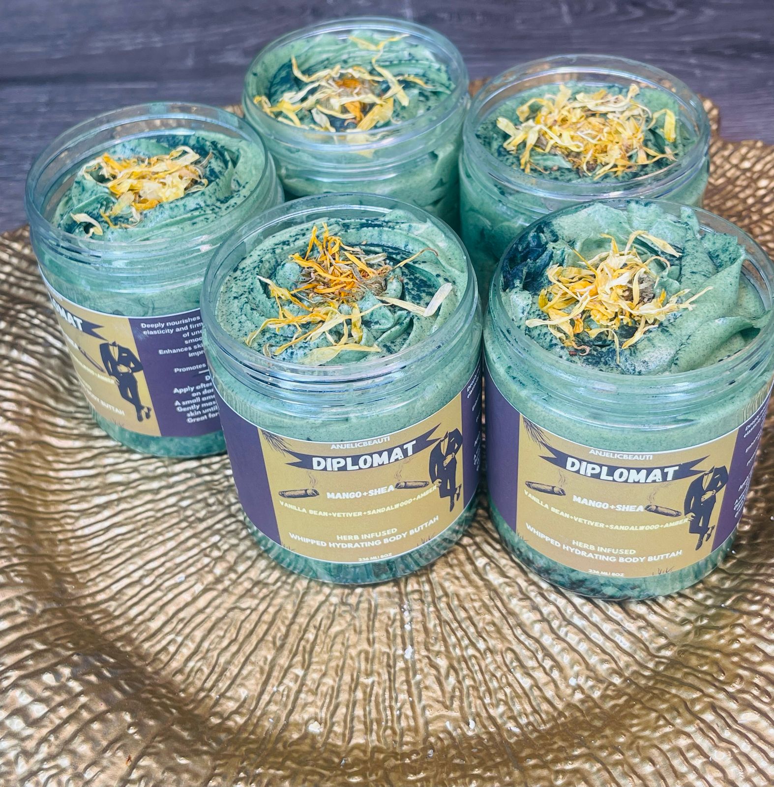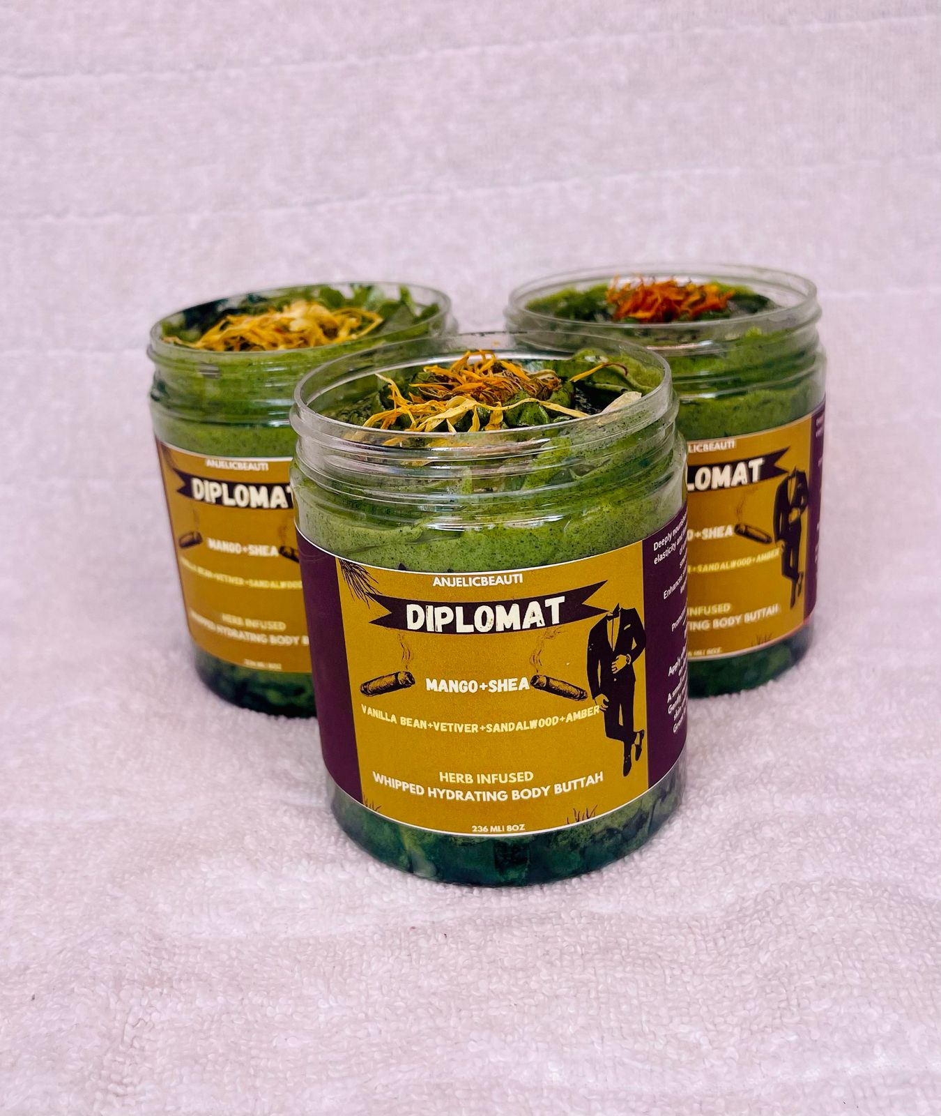 Step into your power with DIPLOMAT, a luxuriously whipped body butter crafted for the modern man who demands more than moisture — he commands energy. Infused with the deep, confident notes of tobacco leaf, vetiver, sandalwood, amber, vanilla bean, and a touch of bergamot, this butter delivers a sophisticated scent profile that lingers without overpowering.